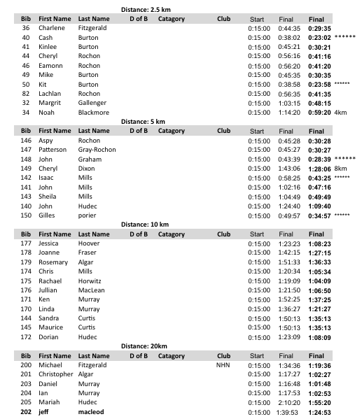 2026 NHN Annual Cross Country Ski LOPPET Times